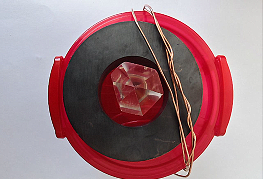Se foloseste pergament uscat (hartie sau hartie de copt) si se aseaza pe capacul caserolei. Dupa care se aseaza cristalul care a fost pulverizeaza cu apa plasmatica GaNSAur 24K , se usca si se lipeste cu silicon fierbinte. Cristalul este izolat de cutie prin pergament (hartie de copt) ,atentie la fixare NU trebuie sa atinga magnetul.