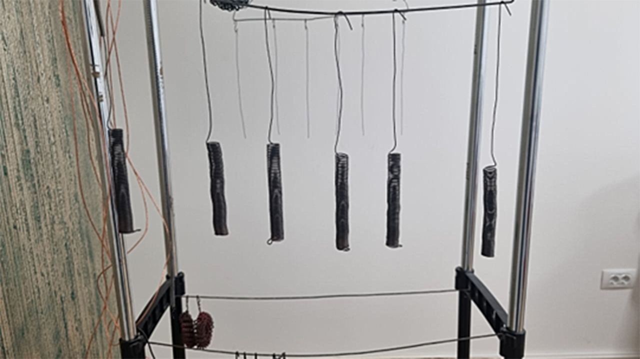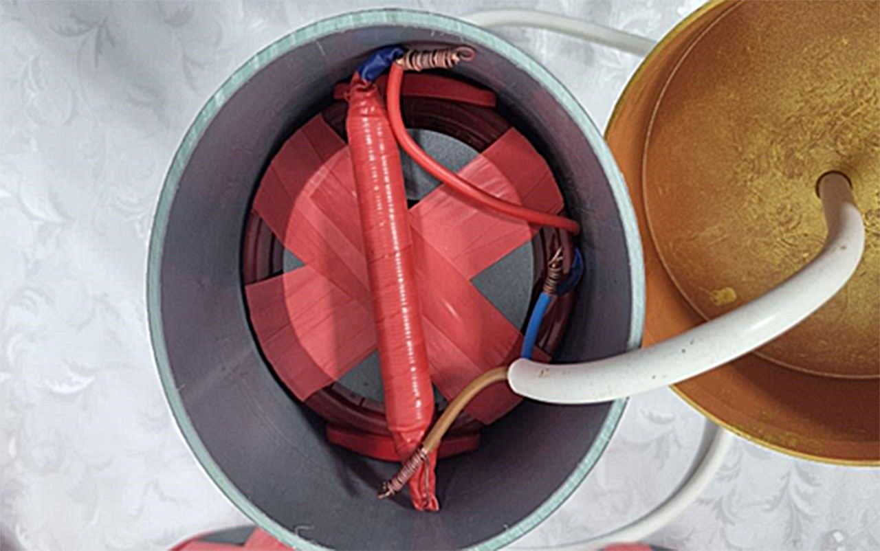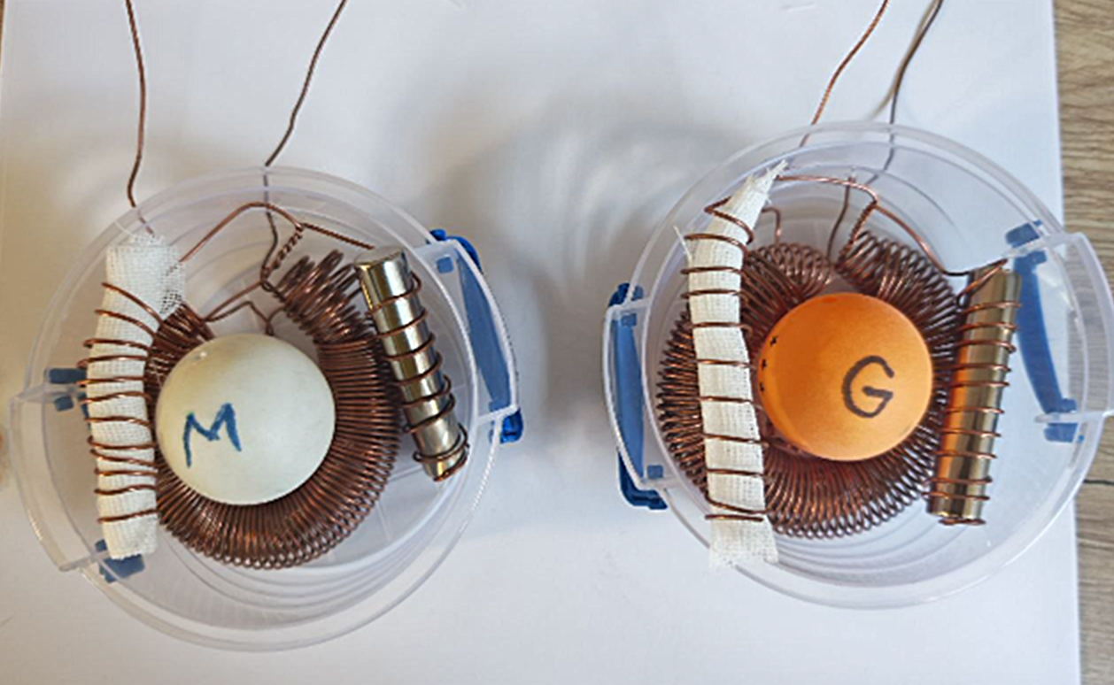 - Bobina mica intra in bobina mare și pe interior in bobina Gravitaționala, un fir central de cupru cu lungimea de 130 cm.