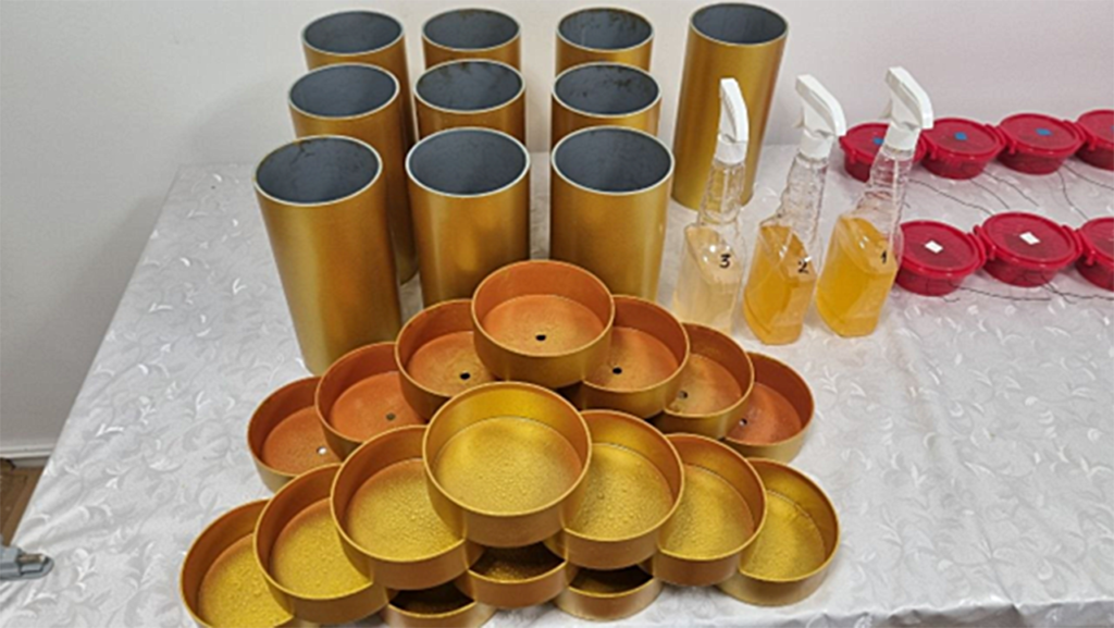 Cutia și capacul unde se așează stackerele se pulverizeaza înainte cu GaNSCO2 + Aminoacizi + Cenușă lemn și se lasă la uscare.